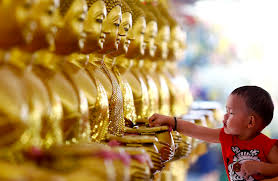 I am intrigued by the golden begging bowls at so many golden statues. As you can see, poverty is treated here and there with a grain of salt.
